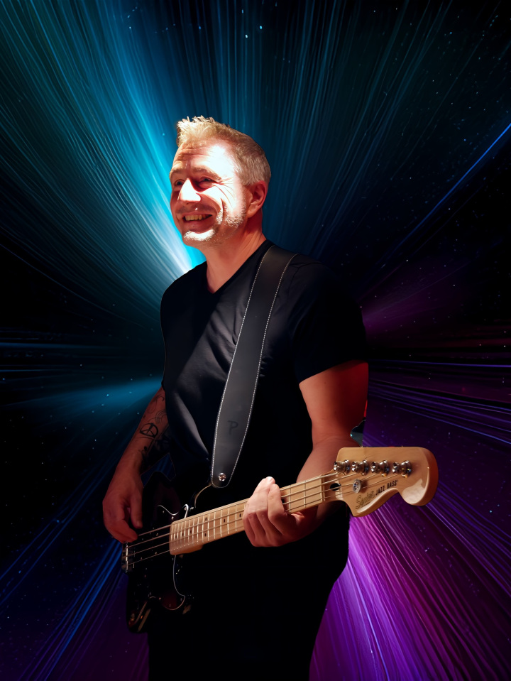 Stefan Kuehn mit „ü“ verstärkt die Band mit seinem Bass und sorgt seit März 2024 für den satten Bass-Soundteppich mit einer harmonischen Tiefe.
