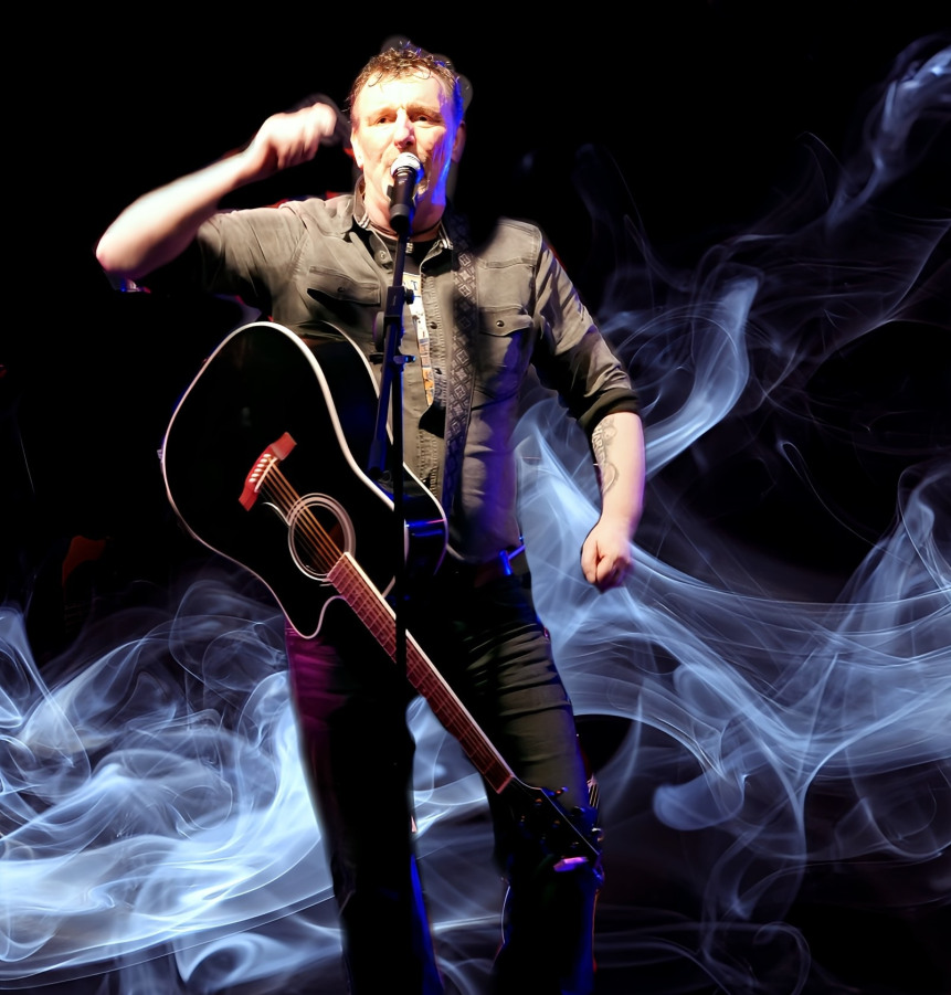 Die Lieder von Bruce Springsteen haben es ihm derartig angetan, dass er nicht nur als Leadsänger bei „Stringsteen Unplugged“ seine Songs singt, sondern auch noch auf Solopfaden unterwegs ist. Neben dem Gesang lässt er es sich nicht nehmen, auch in die Gitarrenseiten zu greifen und Mundharmonika zu spielen. Seine Spielfreude sieht man ihm auf der Bühne regelrecht an, und die überträgt sich auf alle um ihn herum.